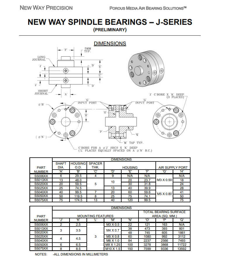 New Way 空气主轴是一种极低流量的技术,将一立方米的空气推入 50 毫米 x 100 毫米的轴承需要近六个小时,因此,与基于孔板的系统相比,运行效率极高。如果气流以某种方式扰乱了空气轴承,轴承表面的多孔性意味着减压将缓慢发生,从而实现软着陆,确保主轴和导向表面保持完好无损。与此形成对比的是,孔板和磁浮轴承经常以灾难性的方式发生故障,我们看到空气主轴如何提供所有优点而没有任何缺点。